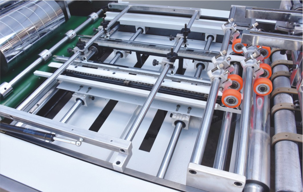給紙部、定位部、上膠部、貼膜部、收紙部