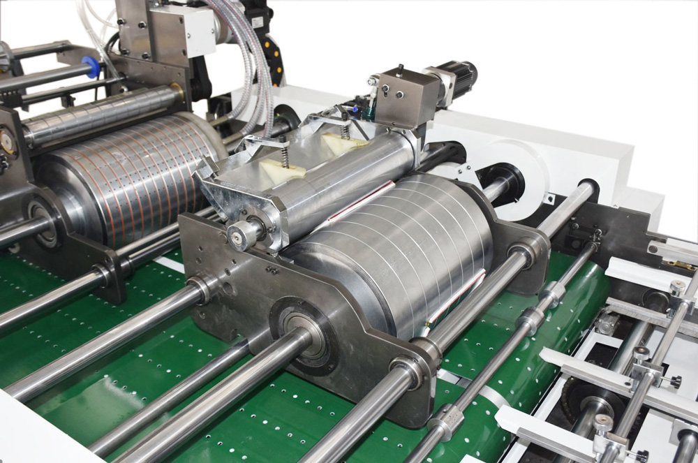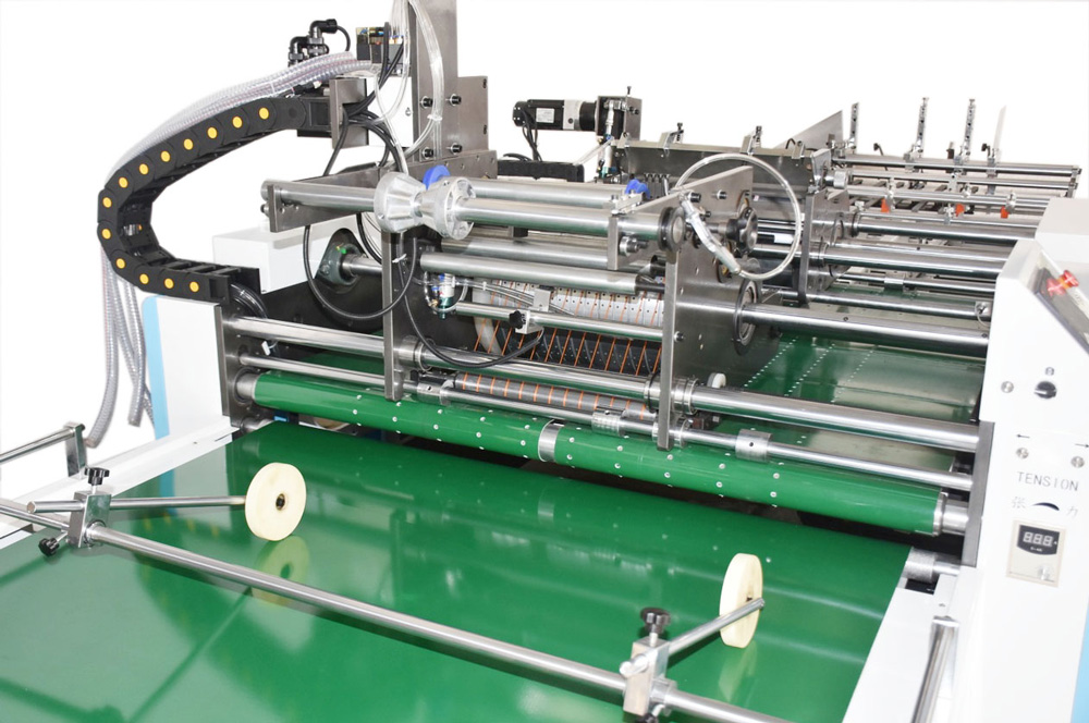 1、輸紙部:間斷式皮帶輸送方式采用獨(dú)立伺服控制系統(tǒng),可根據(jù)紙張長短調(diào)整間斷輸送距離;抽紙皮帶進(jìn)行底部抽紙,去除傳統(tǒng)離合控制方式。以此實(shí)現(xiàn)不停機(jī)連續(xù)加紙。