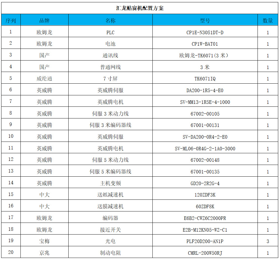 7、電氣系統(tǒng):整機(jī)采用PLC程序控制,各種電氣元件、檢測開關(guān)均采用日本、臺(tái)灣、法國、德國等公司產(chǎn)品。